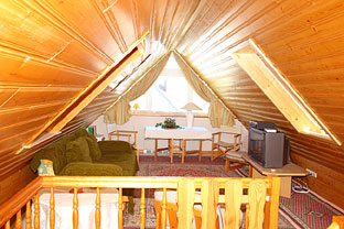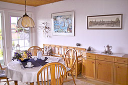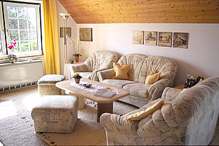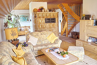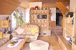 - 1 Wohn- und Esszimmer mit Kachelofen, Hifi-Anlage, SAT-TV, Video